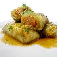 Hervir el repollo entero con agua y sal y un chorreón de vinagre. Aparte, sofreir ligeramente en una cazuela la cebolla picada con la carne picada, la pimienta, la mitad del bote de tomate triturado, los cominos y la sal y, cuando la cebolla se haya dorado, retirar del fuego y añadirle el arroz hervido. Mezclar bien. Separar luego con cuidado las hojas grandes el repollo y rellenarlas con la mezcla, enrollándolas bien para ejarlas como rollitos bien cerrados por los extremos. Por último, echar en una cacerola con un poco de aeite caliente el resto del repollo bien picado, colocar los paquetitos rellenos encima y espolvorear con más repollo picado. Meter la cazuela a horno lento durante una media hora. Se puede servir con puré de patata, aunque en Rumanía lo sirven con polenta a base de harina de maíz desleída en agua hirviendo y sal.